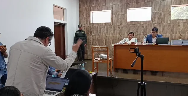“Ha sido una audiencia en la que se ha podido corroborar básicamente dos aspectos”, señaló. El primero, explicó, es la aparente parcialidad de la autoridad judicial en favor de la parte demandada. Según detalló, se otorgó aproximadamente una hora y veinte minutos para la defensa de los demandados, mientras que la parte accionante contó con apenas 20 minutos. “Esto demuestra una vulneración al principio de igualdad de las partes que rige en la Ley 025”, afirmó.