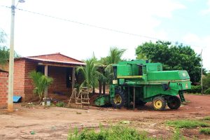 En varias comunidades de interculturales, se pueden ver maquinaria agrícola que contrasta con las casas de modestas construcciones.