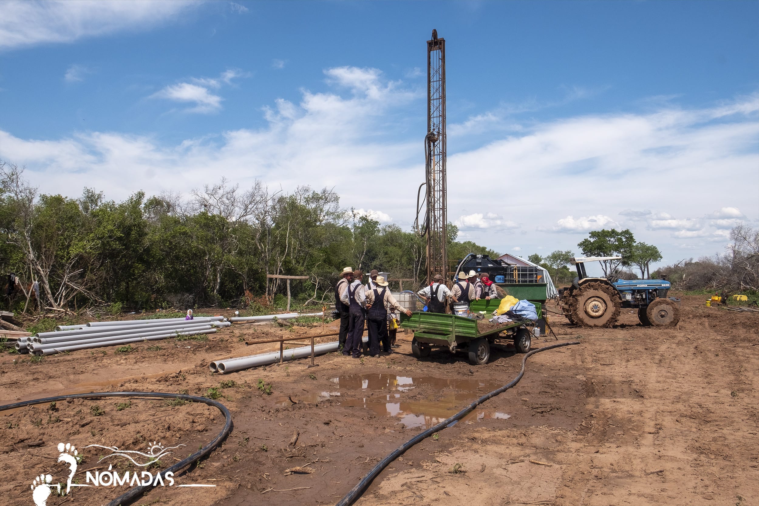 En plena faena de buscar agua en el predio de Cuarirenda.