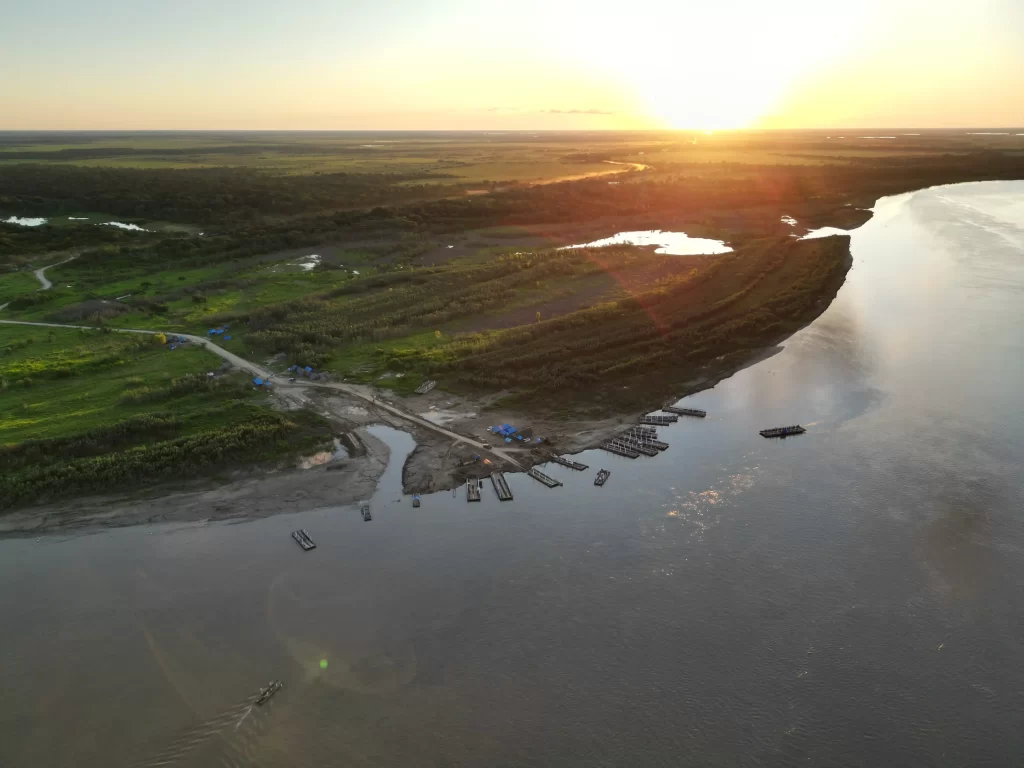 El río Mamoré en Puerto Varador es un punto neurálgico donde la naturaleza y la actividad humana convergen en un espectáculo ininterrumpido. Desde el amanecer hasta el ocaso, pontones cargados de vehículos surcan las aguas mientras el sol pinta el cielo de colores dorados y violetas.