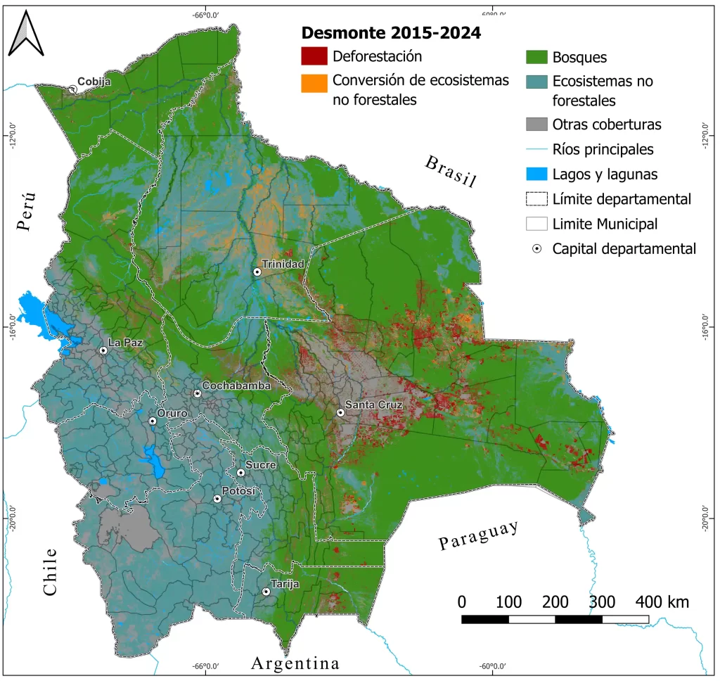 Esta radiografía incluye datos desagregados por bioma, por departamento, por tipo de uso de suelo y por régimen de tenencia de la tierra. Esta desagregación permite observar con claridad cuándo, dónde y con qué fines se transformaron los ecosistemas naturales en Bolivia durante 2024.